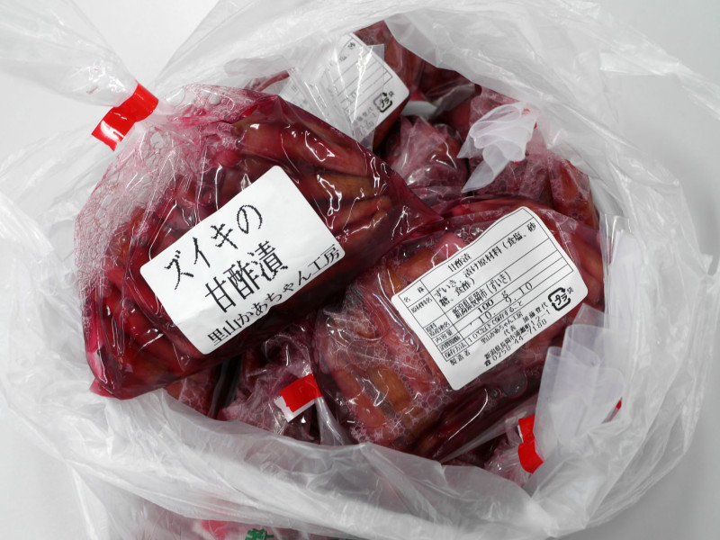 11月中旬~12月中旬。決しておいしい青菜とはいえないが、漬け菜として雪深い新潟では貴重な野菜。雪が降ると青菜がまったくなくなるので、体菜の塩を抜いて煮る煮菜が郷土の味として欠かせない。煮菜は食べたいが漬け菜がないという現状だったので、漬けて売り出したら大ヒット商品になった。幼児体験の根強さと同時に、子どもの頃にきちんとした味覚を育てる大事さに思い至る。