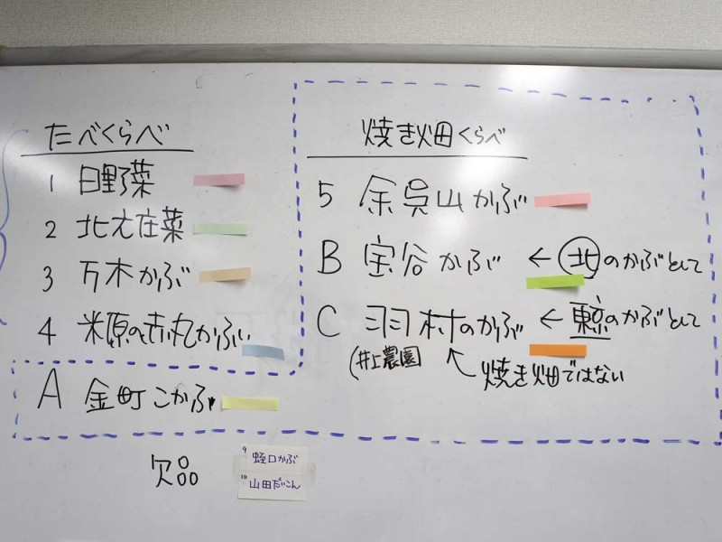 ・日野菜・北の庄菜・万木(ゆるぎ)かぶ・米原赤丸かぶ・余呉山かぶら v.s.