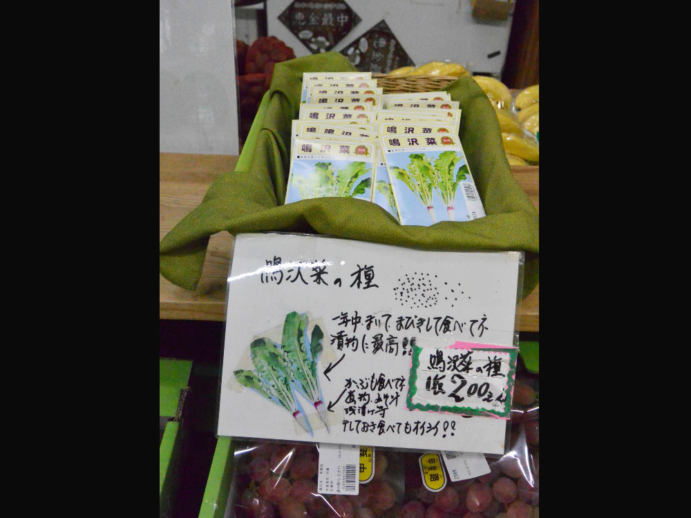 野沢菜とよく間違われるが、この地域の農家なら昔からどこでも作っていた。最近、両者が混ざっているという懸念もあることから、鳴沢菜を絶やしたくないと、優良株を選抜した。