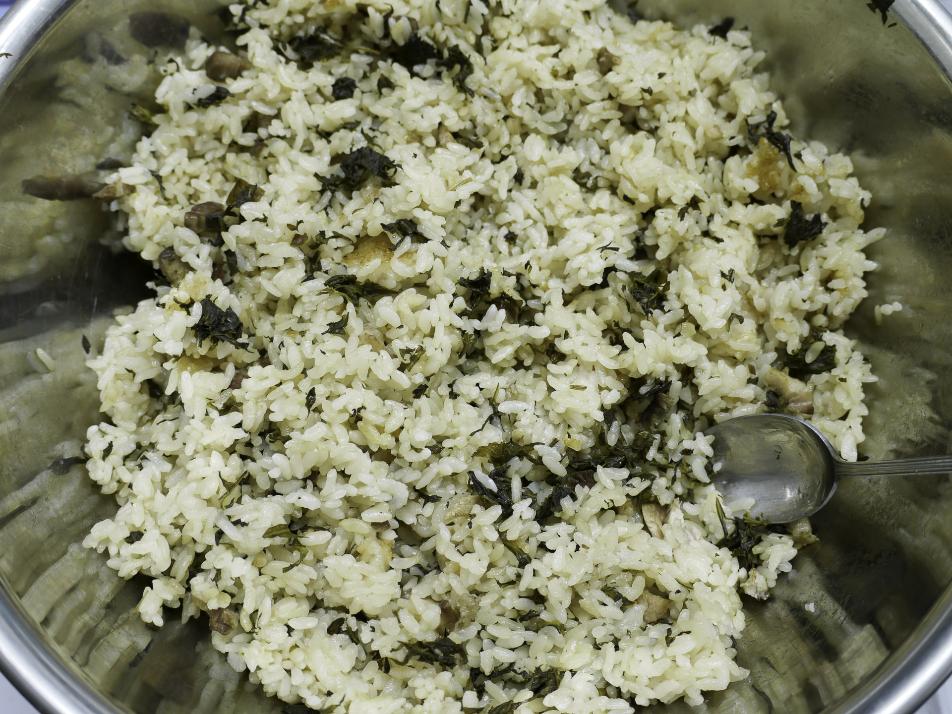 フーチーバーの葉は粗みじん切りにし、水につけ、水気をきる。