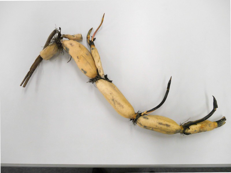 れんこんはよく洗い、皮付きのまま、3㎝の輪切りし、さらに4つ割りにする。
