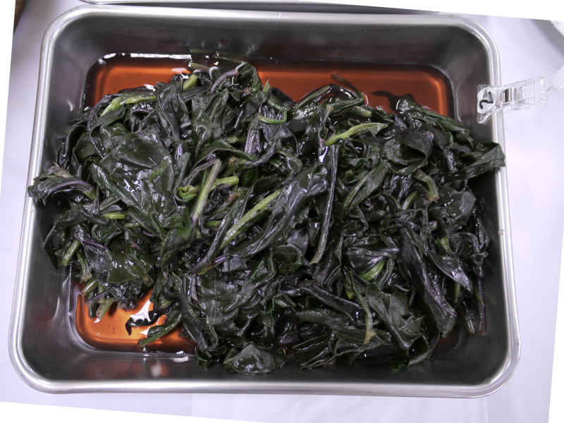 ピンク色に染まった金時草をさっぱりと