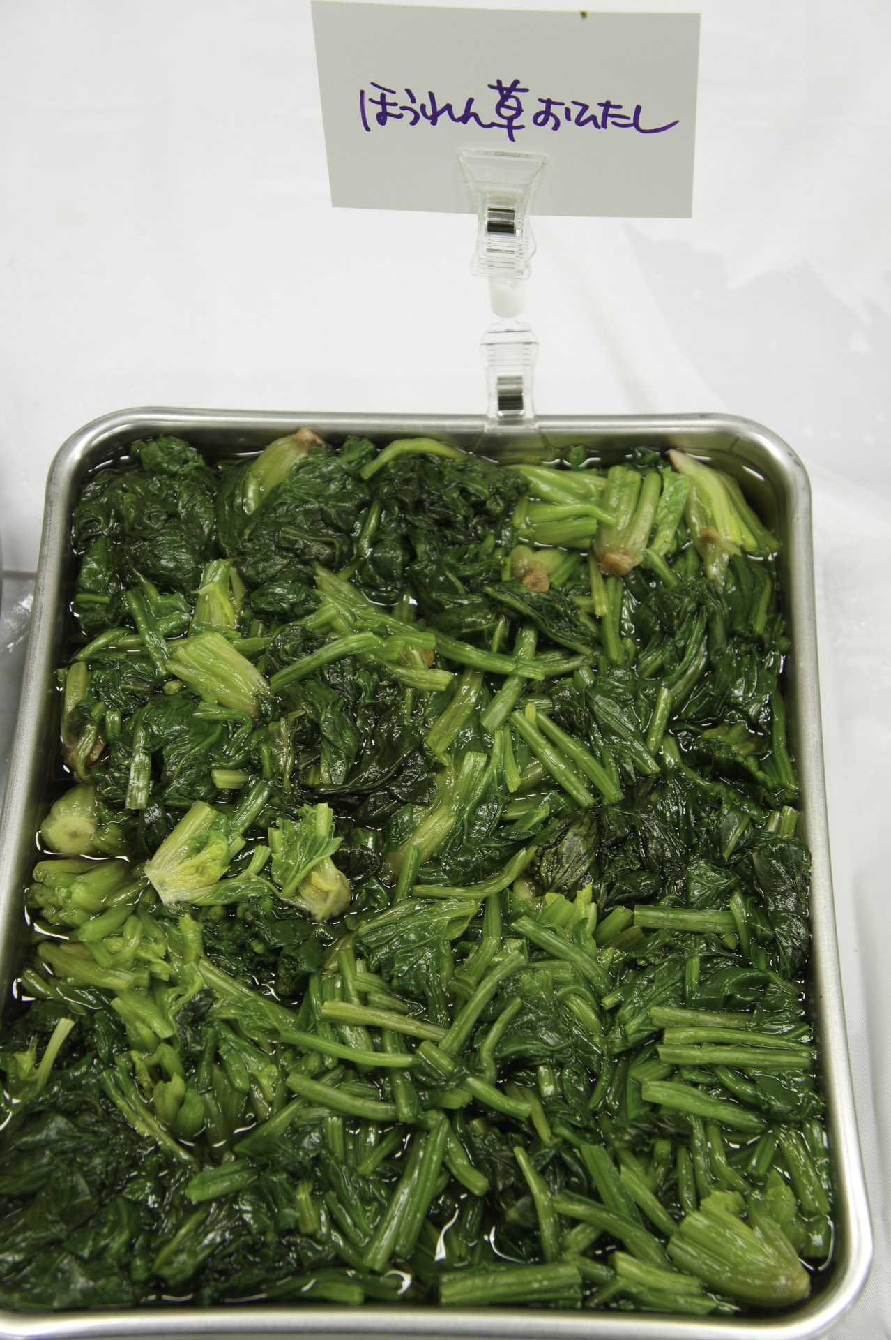 ほうれんそうはゆでて水にとる。水気をしぼり、4㎝長さに切る。