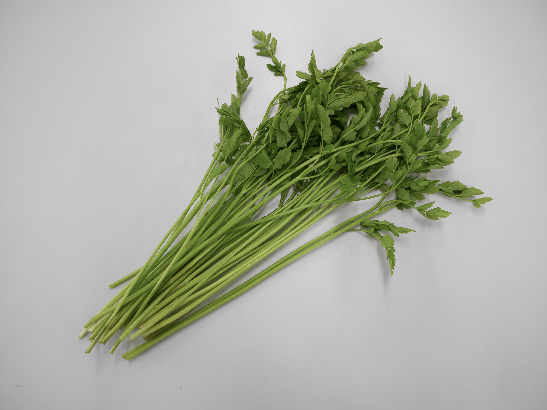 せりは根元を落として、半分に切る。バットにもち粉を入れ、水を加えてゆるめに溶く。