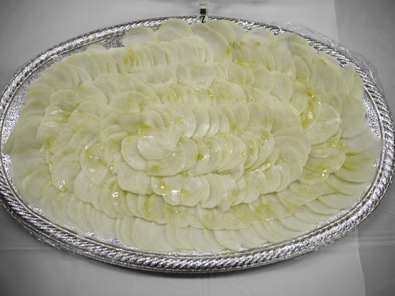 かぶを丁寧に洗い、縦の薄切りにして大皿に並べる。