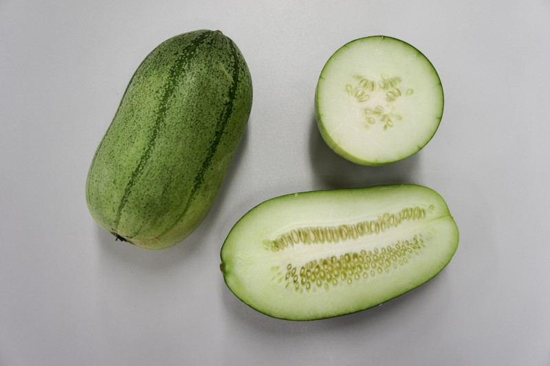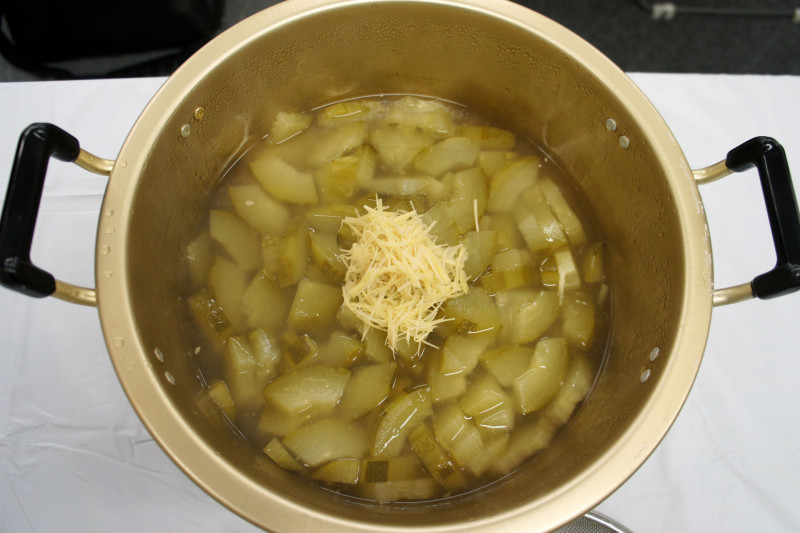 かりもりは縞目に皮をむき、縦4等分に切って、種をとる。1㎝厚さの輪切りにする。しょうがはせん切りにし、水にさらす。