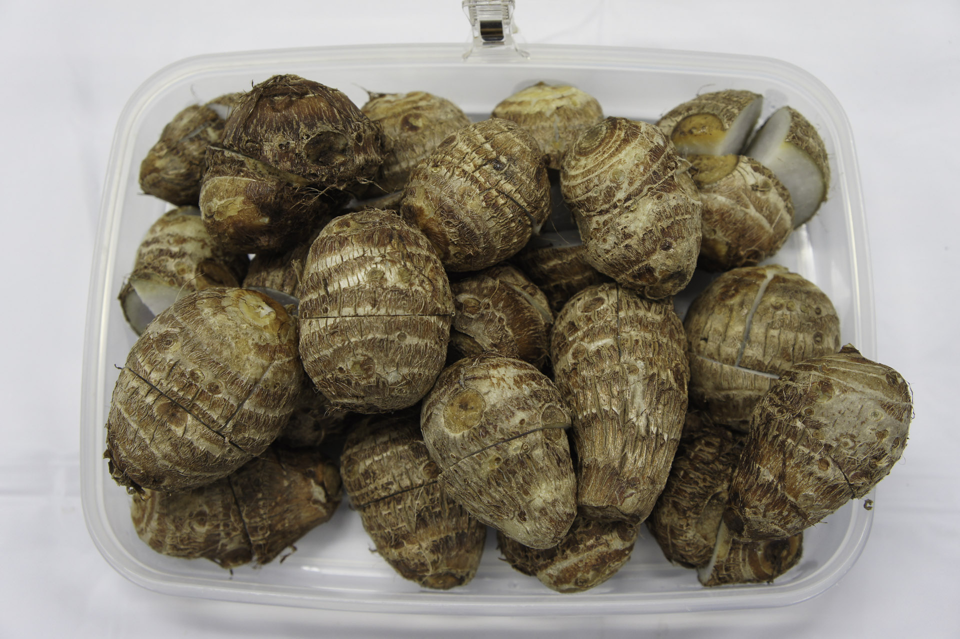 蔵王さといもは皮をよく洗い、蒸気が立った蒸し器に入れて蒸す。
